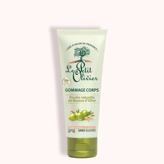 LE PETIT OLIVIER GOMMAGE POUR LE CORPS POUDRE NATURELLE DE NOYAUX D’OLIVE PEAUX NORMALES À SÈCHES -200ML-