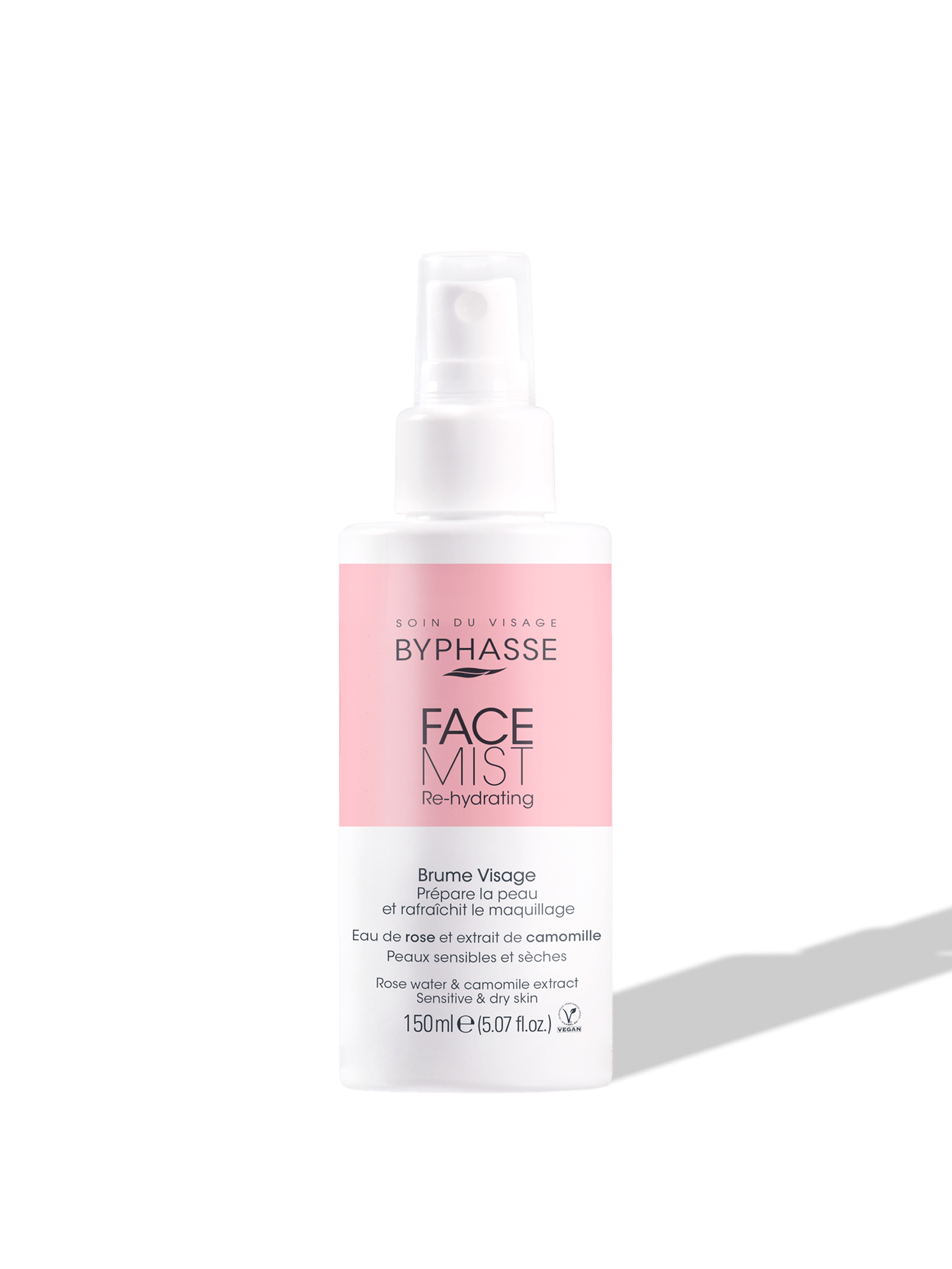 رذاذ وجه منعش ومرطّب بماء الورد ومستخلص البابونج، مصمّم خصيصًا للبشرة الحساسة والجافة.